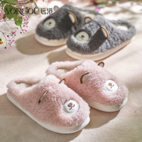 遠港小熊棉拖鞋女秋冬季居家用室内保暖加绒毛毛绒厚底冬天男情侣