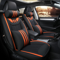 四季座垫全亚麻汽车座套五座通用汽车座垫朗逸途观科鲁兹帕萨特凯美瑞翼虎汽车座套黑橘色-豪华版奥迪A6LA4LA3Q5Q