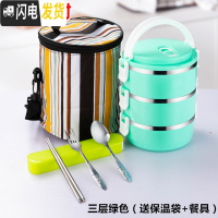 三维工匠保温饭盒上班族日式双层餐盒2层三层学生不锈钢便当盒1人便携多层 3层绿色(送保温袋+餐具)