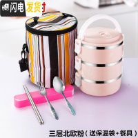 三维工匠保温饭盒上班族日式双层餐盒2层三层学生不锈钢便当盒1人便携多层 3层北欧粉(送保温袋+餐具)