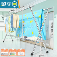 敬平折叠晾衣架落地室内家用阳台不锈钢室外升降凉伸缩杆式晒被子器 升级款2.2米[中杆升高]方管交叉 大晾衣杆