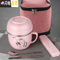三维工匠304不锈钢饭盒学生双层便当盒女快餐杯可爱创意泡面杯食堂打饭盒 粉色餐杯(小象图案)+红保温袋+304勺筷盒