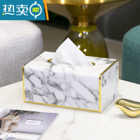 敬平纸巾抽纸盒家用客厅创意简约现代餐巾纸盒轻奢高级感ins风 爵士白大理石-左右镶金纸巾盒