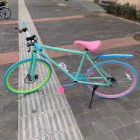 变速死飞自行车碟刹21速男女学生通勤公路车实心胎
