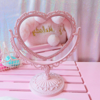 美帮汇粉色少女爱心双面镜 少女房间装饰桌面化妆镜蕾丝梦幻旋转补妆镜