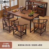 晋舰茶桌组合实木客厅家用简约小茶台新中式1.2素茗皇冠椅2元宝凳边柜