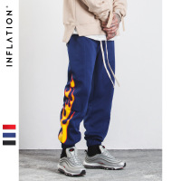 【硬汉风格】2018春装欧美火焰印花缩脚男式松紧复古运动裤休闲裤男