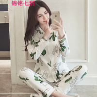 锦铭七玥2018春季新款女生仙人掌印花长袖睡衣女士韩版休闲开衫棉居服