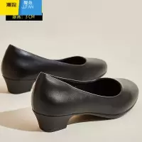 聚范圆头矮跟礼仪鞋女黑色皮鞋软面酒店银行职业鞋上班带跟低跟工作鞋