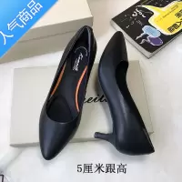 SUNTEK黑色高跟鞋女5cm细跟3cm低跟久站不累脚软皮舒适上班职业单鞋