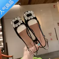 SUNTEK水钻方扣玛丽珍凉鞋女夏2023新款低跟包头一字带后空浅口单鞋粗跟