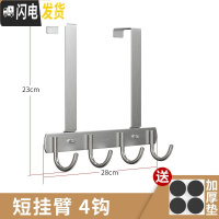 三维工匠卧室免打孔不锈钢后挂钩厚6cm 收纳包包衣服上挂衣架置物架 4钩短臂经典款(6cm厚门可用)