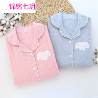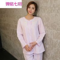 锦铭七玥夏季双层纱布月子服 长袖薄款纯棉哺乳装 孕妇大码家居睡衣