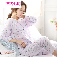 锦铭七玥长袖薄款孕妇家居服 纯棉纱布蕾丝月子服 纯棉哺乳家居服套装