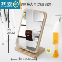 敬平大号木质台式化妆镜女梳妆镜学生桌面镜子宿舍少女便携折叠可立小 原木深色大号 [方形圆角]前收藏加购送梳子、便携式用镜