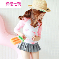 锦铭七玥2018新款女童泳衣中大童宝宝儿童防晒长袖女孩分体裙式火烈鸟泳装