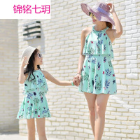 锦铭七玥新款游泳衣女亲子装女款裙式分体平角裤泳装女儿童泳衣母女套装