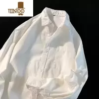 YANXUDK白色长袖衬衫男宽松情侣套装韩版潮流学生班服休闲学院风衬衣