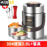 三维工匠304不锈钢真空超长保温饭盒1人便携餐盒多层学生便当桶上班族 [钢本色]304提锅2.0+餐具