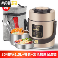 三维工匠304不锈钢真空超长保温饭盒1人便携餐盒多层学生便当桶上班族 [香槟金]304提锅1.5+餐具+灰袋