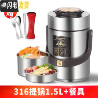 三维工匠304不锈钢真空超长保温饭盒1人便携餐盒多层学生便 [钢本色]316提锅1.5+餐具(内胆304/食格级31