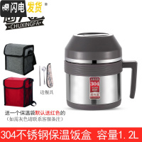 三维工匠分隔保温饭盒学生便携304不锈钢真空超长保温桶大容量带饭盒 金色2000
