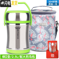 三维工匠上班族304不锈钢保温饭盒真空超长便携餐盒多层学生便当桶 绿I型提锅2.5+火烈鸟圆包+餐具3件套