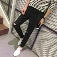 YANXU美式高街黑色破洞牛仔裤男修身弹力小脚膝盖刀割破坏乞丐裤潮