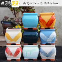 三维工匠多肉花盆束腰多肉绿植花盆四方口带脚粗陶立体简约多肉盆 灰色小四方随机8个 中等花盆容器