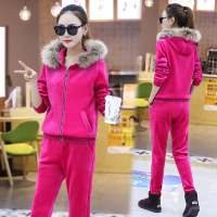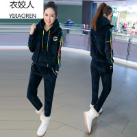 衣姣人(YIJIAOREN) 2018女装新款女装冬时尚双面绒加厚连帽三件套运动休闲套装女