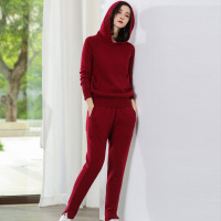 女秋季时尚针织两件套休闲运动套装新款连帽女装毛衣长袖羊绒衫