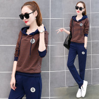顺崇2018春季新款韩版条纹运动休闲套装女连帽学生卫衣套装两件套潮