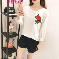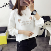 2018新款女装韩版装长袖T恤女士打底衫学生宽松圆领白色上衣潮