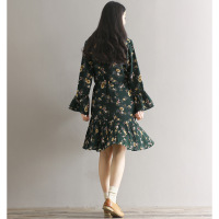 YIBUSHENG高端气质中年女士季棉绸连衣裙大码宽松显瘦妈妈装中长款裙子