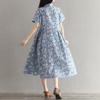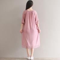 YIBUSHENG棉绸连衣裙女天大码气质宽松胖妈妈遮肚显瘦纯色休闲棉麻长裙子