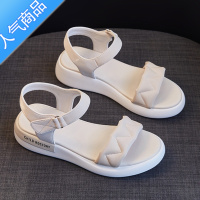 SUNTEK百搭凉鞋女2023新款夏季学生平底魔术贴露趾软底显白轻便女鞋