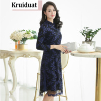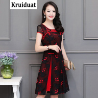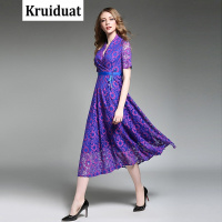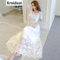 Kruidvat蕾丝绣花连衣裙女2017夏季新款大码女装韩版修身显瘦优雅