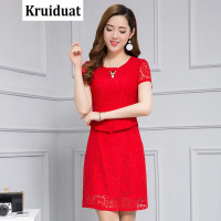 Kruidvat蕾丝绣花连衣裙女2017夏季新款气质时尚优雅中长款大码女装红色