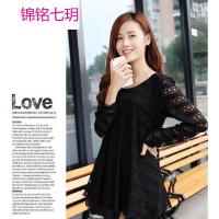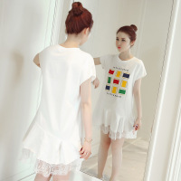 薇侣2017新品新款夏装可爱彩色绣花蕾丝孕妇中长款T恤连衣裙大码女