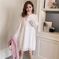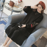 泡澡的蚂蚁春秋装孕妇装新款压褶绣花孕妇连衣裙 果819