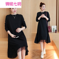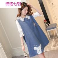 锦铭七玥孕妇装018春秋季新中长牛仔绣花孕妇连衣裙 大码宽松背带裙