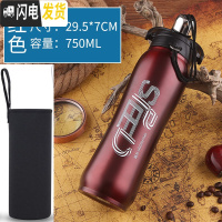 三维工匠304双层不锈钢大容量户外真空保温杯男学生水壶便携防漏水杯750 蓝色750加杯套杯刷