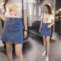薇侣2017新品夏季韩版高腰显瘦包臀牛仔半身裙女排扣短裙A字裙