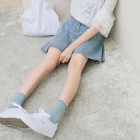 顺崇2018夏新款韩版牛仔裙半身裙女高腰显瘦大码a字裙百褶裙短裙子