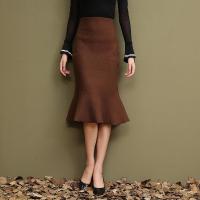 2018秋冬季新款高腰纯色百搭包臀半身裙中长A字裙针织弹力鱼尾裙