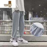 YANXU 浅蓝色系带设计牛仔裤男韩版宽松直筒休闲百搭长裤ins潮