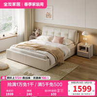 全友家居 现代简约时尚牛皮皮艺双人床1.8米婚床软床轻奢皮艺软靠床