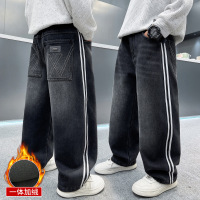 男童秋冬款裤子加绒加厚新款大童冬季直筒儿童一体绒牛仔长裤