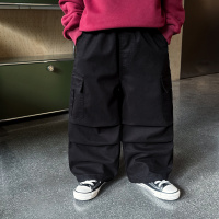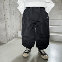 童酷男童冬款纯色百搭宝宝长裤山系打杆贴袋一体绒儿童工装裤
