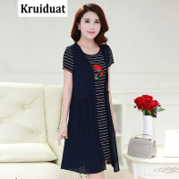 Kruidvat2017夏季新款中长款大码女装时尚条纹显瘦短袖两件套连衣裙女YX